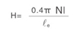 ![]() | H:磁場強度(Oersteds)magnetizing force(oersteds) N:圈數(shù) number of turns I:電流(A)peak magnetizing current(amperes) Le:磁路長度(cm) mean magnetic path length(cm) 1Oersted=0.7958A/cm |